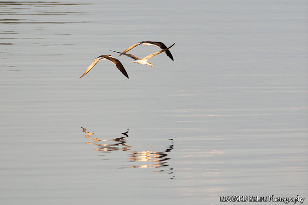 I watched this pair and their chick hunting up and down the river at last light.