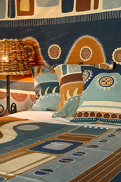 However, as I discovered recently, it’s equally frustrating and challenging to photograph inanimate objects in a completely controlled environment. I was doing a photo shoot for Tribal Textiles – a nearby textile workshop and retail outlet employing more than 100 local artists (visit their website here) – to create a portfolio of web photos for their new range of products.