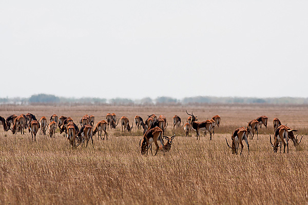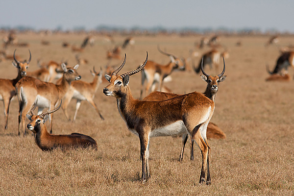 Endlessly we followed the dry dirt track, wondering when it would end, until finally, we burst out onto the open plains of Chikuni and were met with an unbelieveable sight. As far as the eye can see, on all sides, Black Lechwe feed on the closely cropped grass. No wide angle lens can do justice to that view.