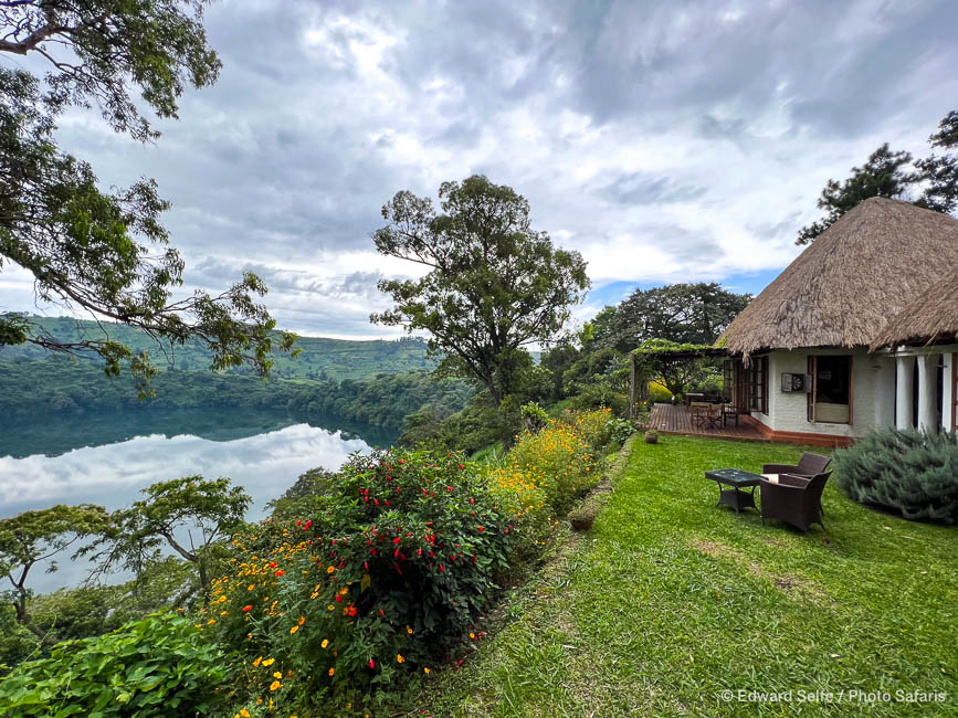 In 2024, we will spend a night at Ndali Lodge, among the great crater lakes in the Fort Portal area. We passed through on our way south from Kibale Forest towards Queen Elizabeth NP. From there, we continued south and spent the afternoon exploring the northern section of QENP, both in the vehicle and from a boat on the Kazinga Channel, a 40km long waterway which connects Lake Edward with lake George.