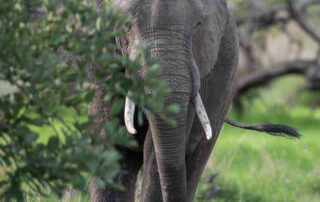 I was driving through the park recently when I saw a large elephant bull pushing through the bushes towards the road. He seemed agitated so I moved forward to avoid blocking his path and waited to see what would happen. As he approached me, he bashed through the bush near the road, creating a nice image of excitement and nervousness. After approaching my vehicle and sniffing all around me, he crossed the road and dropped down [...]