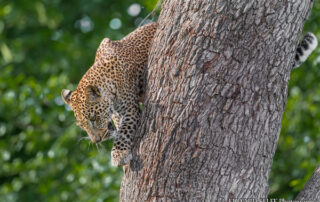I watched this young leopard for a couple of hours yesterday afternoon. She was very relaxed up in the tree but when the temperature dropped, she decided to come down. Having fed not long before, she had a very full stomach so made a bit of a mess of her descent! I followed her as she scouted around the area and scented various bushes, presumably picking up the spray-marks of the territorial adults in the area. [...]