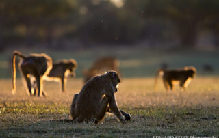 I caught these baboons as the last rays of sunlight were bathing the plains with that golden glow. This troop were happy rooting for tubers and dung-dwelling insects until darkness fell as they were just a few metres from their roosting site in a grove of Ebony trees.