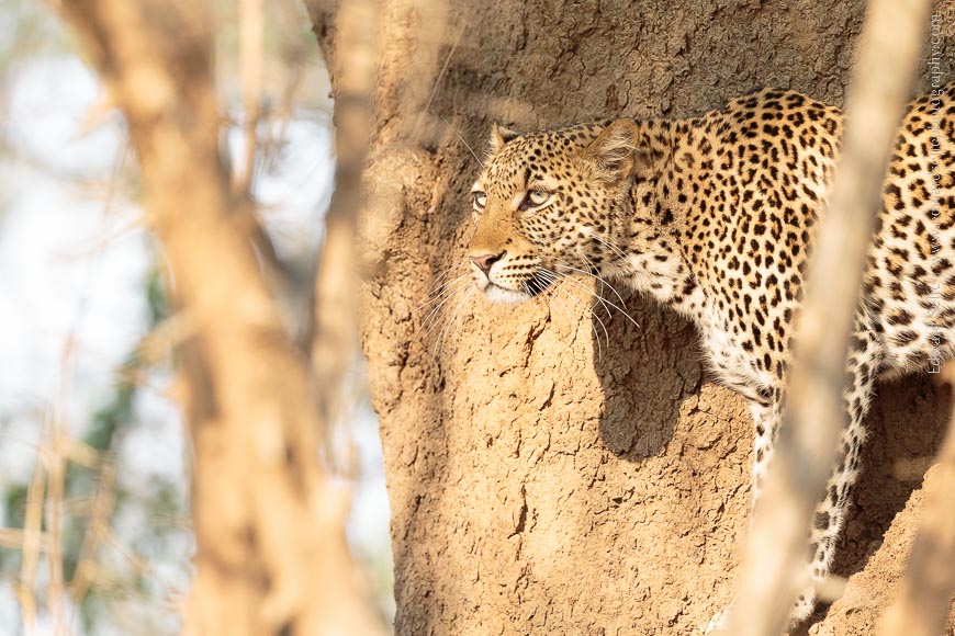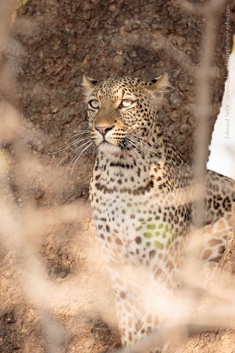 Up to this point, the LEOPARDS had kept a low profile, probably because there had been lions active in many of their favourite hunting grounds. But that same evening of the lions crossing the river, we came across a leopard resting in a gulley in the late evening.