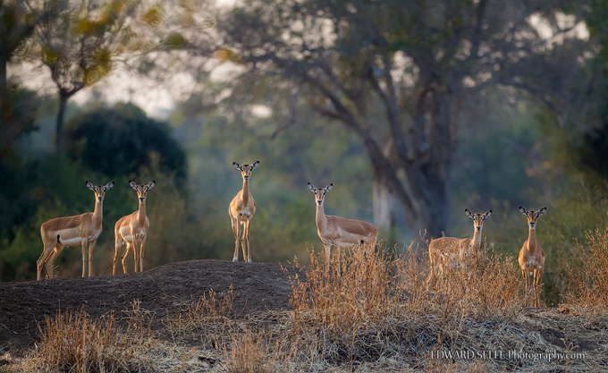 As the light was dropping, some impala arranged themselves nicely along an old termite mound…