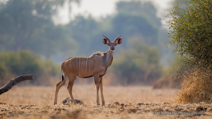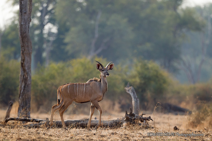 Next up, we found some Kudu heading to the water along the Kauluzi River. They never bunched together so that I could photograph them all, but I was able to shoot some pics of the young male.