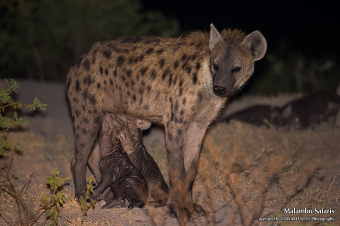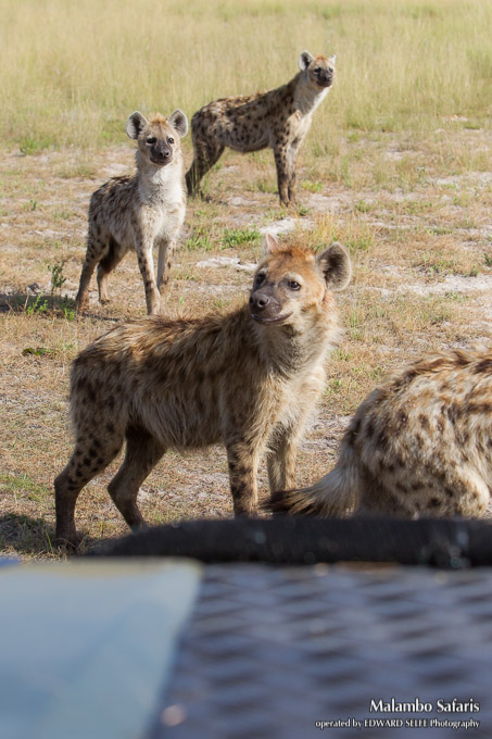 Rivalry between young hyaenas for the finite resources of their mothers’ milk is fierce and siblicide is commonly recorded in this species. We could see the heat of the rivalry even in the short time we were there. We decided to move away once the females began to herd the youngsters into the den, deciding that perhaps we were beginning to distress them.