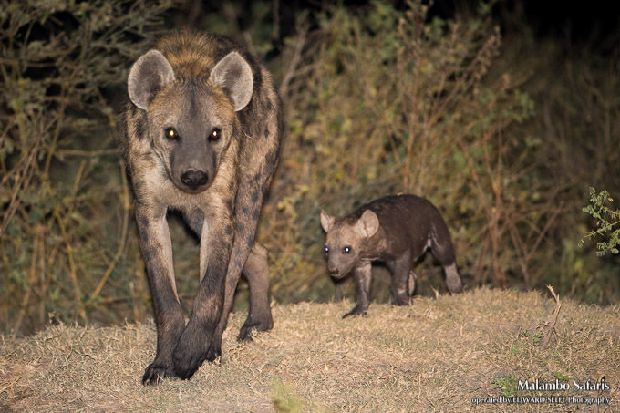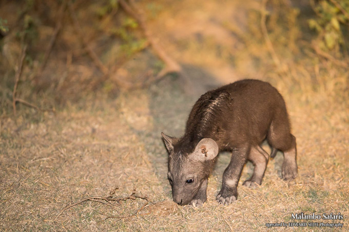 Immediately darkness arrived, we could hear the sounds of the cubs begging for food from the adults. We knew they must have emerged from the den. What followed was perhaps the most memorable 30 minutes of my trip to Liuwa: we approached slowly and found 5 cubs milling around on top of the mound, being cared for by two large females.