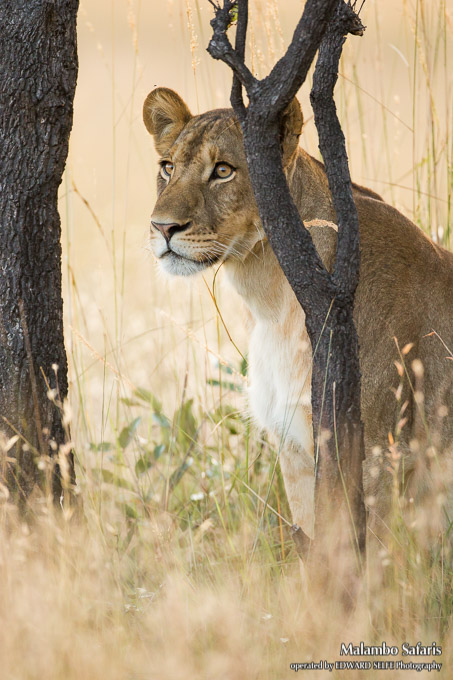 All 5 were there, including the famous Lady Liuwa, although it was only the young male Nakawa, and the larger female cub who stood up to offer a photo opportunity. It was great to see them in such nice light.