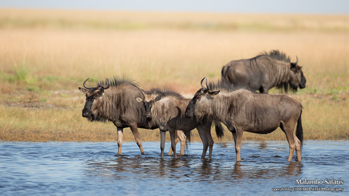 Returning to the same area the following morning, we found that the wildebeest were beginning to head to water to drink, so we set up at one of the lagoons and waited for them to arrive.