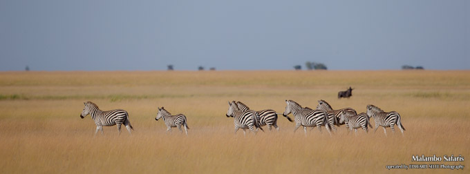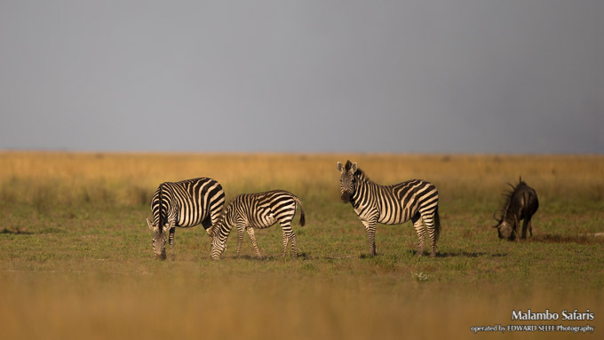 Heading back to camp, we got one of my favourite photos of the trip; a mixed herd of zebras and wildebeest arranged nicely across the plains.