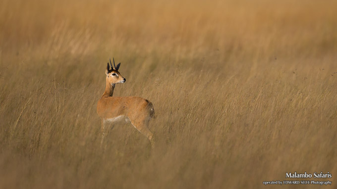 They started to show interest in some zebras in the distance so we moved away as they slunk into the grass. Meanwhile I took some photos of the backlit grasses, and a nearby Oribi male, before the sun went down.