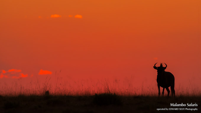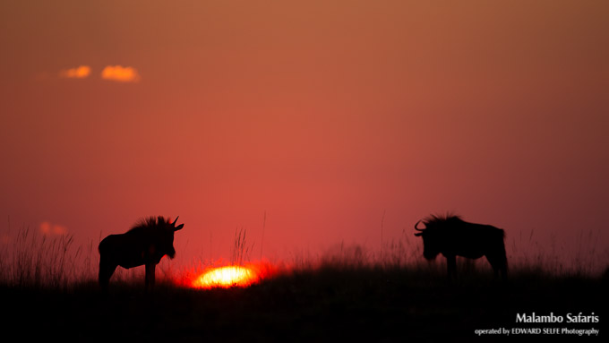 …we set up in a good spot for sunset, ready to take shots of the silhouetted wildebeest agains the reddening sky.