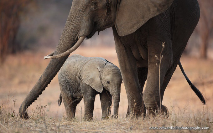 The interaction between an elephant cow and her calf is always a pleasure to watch. Elephant calves are rarely spotted far from mum’s side – one study claims that before their first birthday, a calf will spend 90% of its time within 3m of its mother…!
