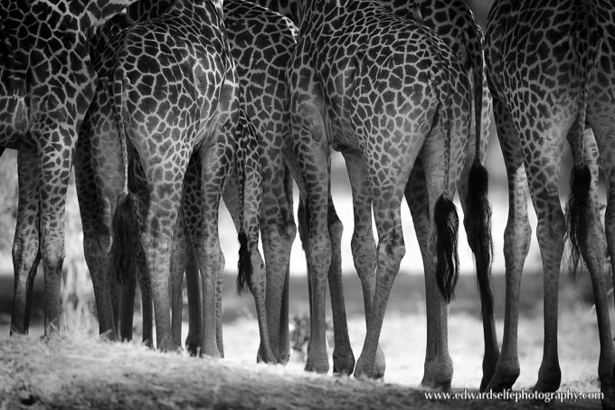 At one point, the whole herd gathered together around a very small calf. I tried to get some shots of the calf in the middle but the melee was too tight, and I could only compose shots of their long legs all bunched together.