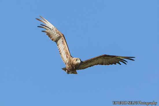 Adults have striking black and white plumage, with a red face and legs. Juveniles, as with many large raptors, take a number of years to achieve the good looks of the adults. This youngster was flying towards me in beautiful morning light, and showing off his agility.