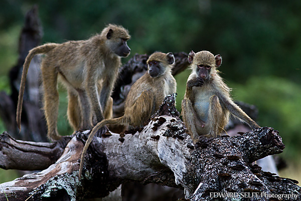 As it was, I didn’t take many photos until it was almost dark when I came across a troop of baboons preparing to roost in some Ebony trees along a lagoon. It seems that they regularly choose Ebonies as roosting sites because they are very tall and not heavily leafed which allows them a good viewpoint to spot predators (mainly leopard) as they approach.