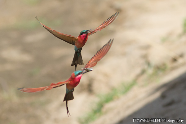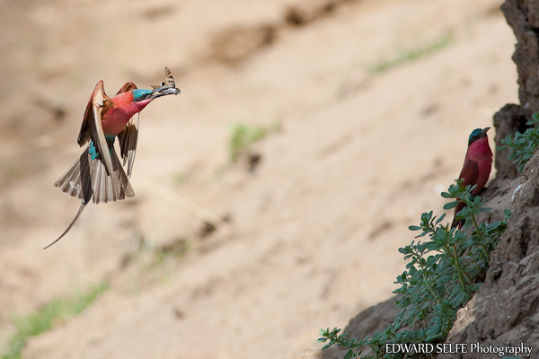 The Carmine Bee-eaters are still in the Luangwa in huge numbers. Most of them are concentrated along the sandy rivers where they are rearing chicks in nest holes excavated into the banks.