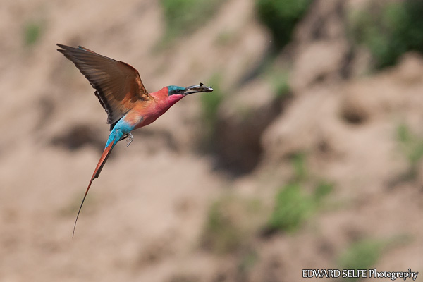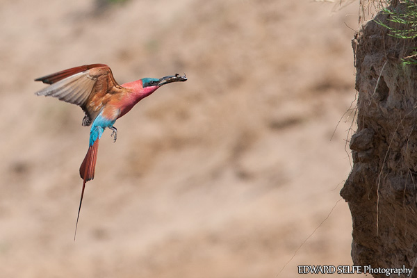 Here are a few shots of the ‘Carmines’ returning to their nest holes with insects for the chicks inside.