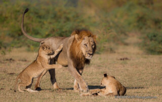 I was at Lion Camp with Kirstie, Sukey and my family after our wedding, and enjoyed some fantastic time with lions on a shelf by the river. There were 4 females, 9 cubs and two large males, so there was wonderful interaction, some play and some dominance. Here's a selection of the behaviour on display... Early morning, the big male was calling to assert his authority. One of the cubs was giving his best 'tough-guy' impression. [...]