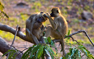 Early morning and late afternoon are the busiest times for primates. Grooming, feeding, cementing relationships, caring for young and resolving disputes are common activities at this time. This morning, I sat and watched this young female grooming an older female. Possibly a member of her [...]