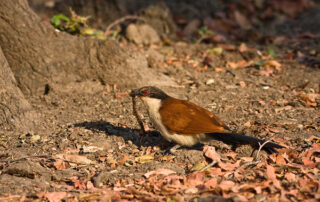 Today I spent a while watching a Burchell's Coucal foraging in the leaf litter around the base of an Ebony tree. It had a fairly successful time, first finding a centipede and then a small snake which I think is a Cape Centipede Eater, although [...]