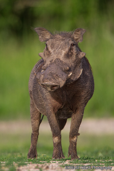 I was out driving in the park last night at that time of day when everything looks golden! I came across this warthog who was feeding on the short, fresh grass near a small lagoon. Instead of running away when I drove up, he approached with his head held high and his tail swishing. He was frisky, almost fiesty! I took a few photos while he stood resplendent in the sunshine.