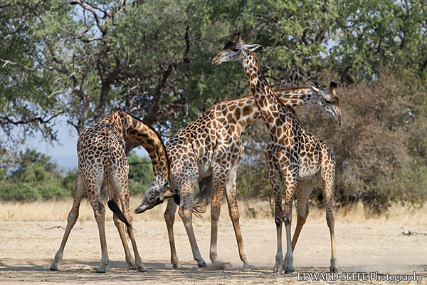 When three, or even four, giraffes get involved, they really get tied in knots.