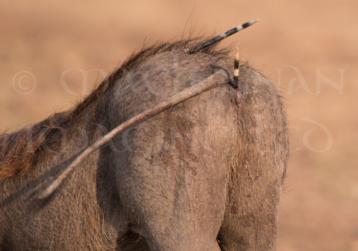 This is a (fortunately) rare sight. This warthog had obviously reversed into a burrow without checking it first and had ended up with a porcupine quill in the most painful place. Ouch!