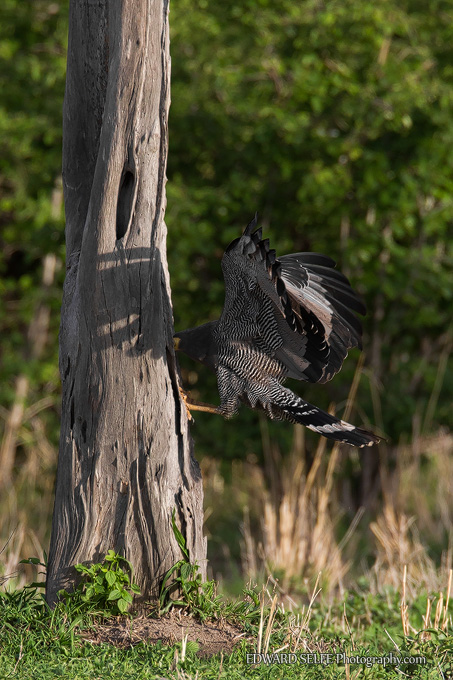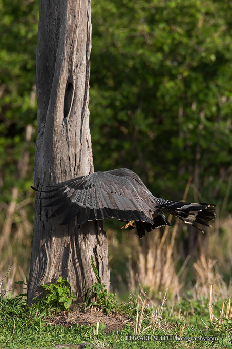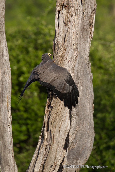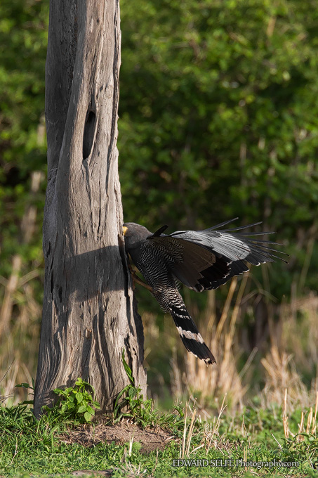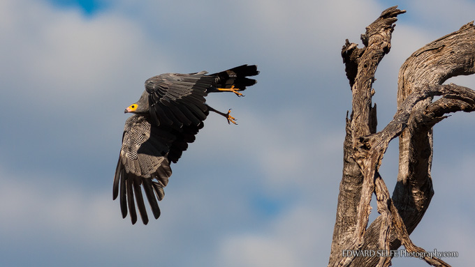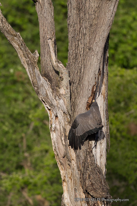 I watched an adult bird feeding at a large Mopane tree recently. The starlings (whose nests it was hoping to raid) were making a huge racket and led me to the bird in the first place. They mobbed the raptor, seeking to chase it from the area, but the raptor continued to feed without paying much attention.
