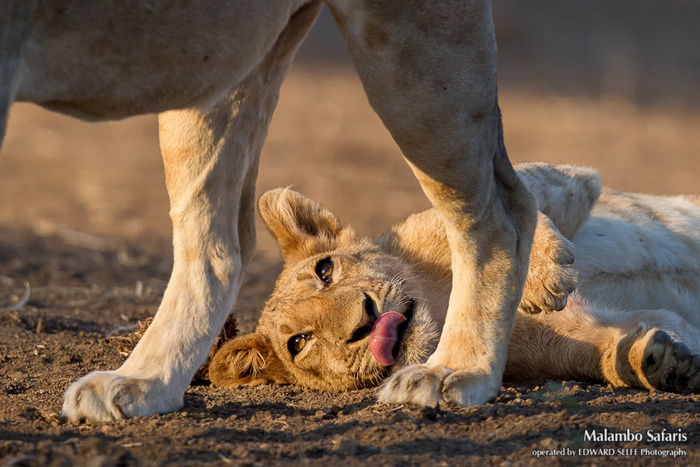 After finding her crossing a plain with the cubs, she settled down in the shade and fed them.