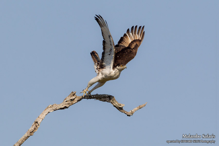 Being ready to capture action such as this sometimes requires not speed but patience. We sat for over half an hour waiting for this Hawk Eagle to take flight.