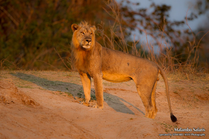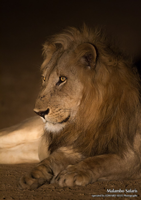 The majestic male of the Southern Nsefu area – he rarely rises before dark so we returned and snapped him at night….