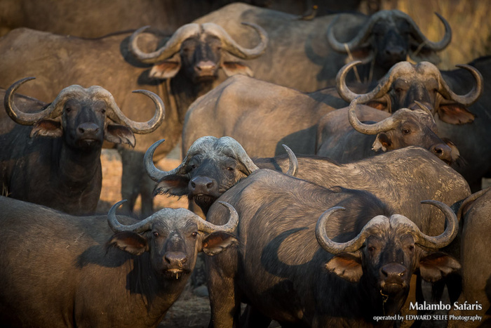 A tightly bunched herd of buffalo is more than most lions will take on.