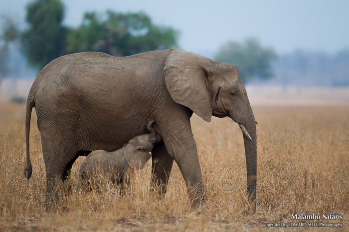 Out on Mtanda plain, the elephants were making their daily journey to the grasslands for forage, pausing to feed the youngsters.