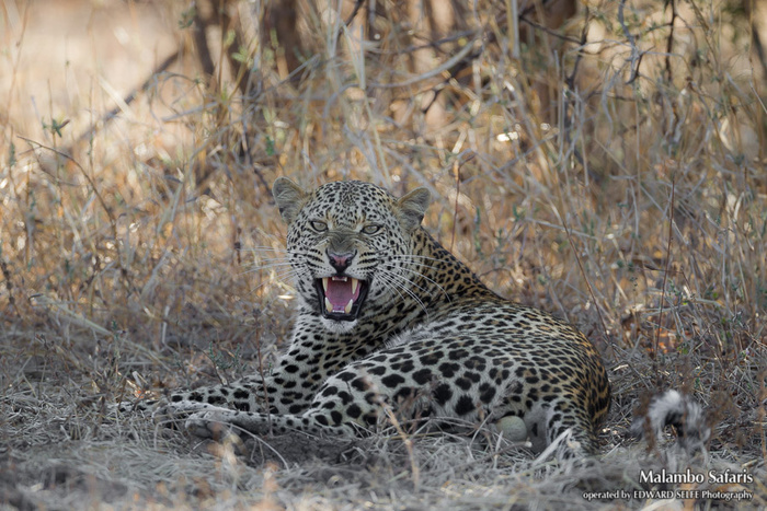Around Lion Camp, we tracked down a large male leopard who wasn’t that pleased to see us! We approached slowly but raising a camera scared him a little and he snarled impressively!