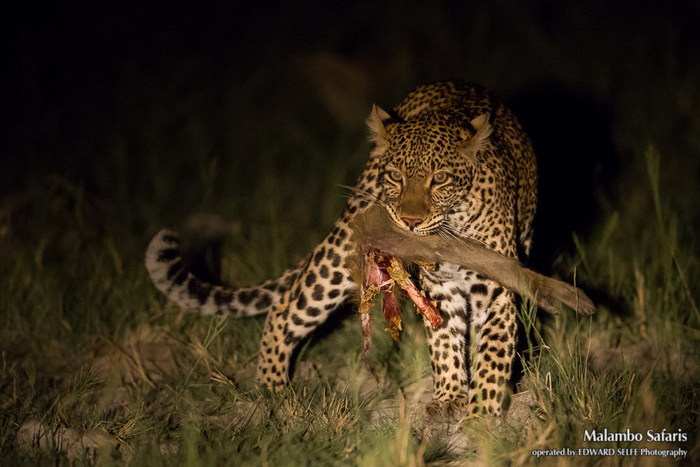 We caught this leopard out in the open with the limb of a baboon. It was presumably taking it back to her cubs but we didn’t follow for fear of disturbing the location.