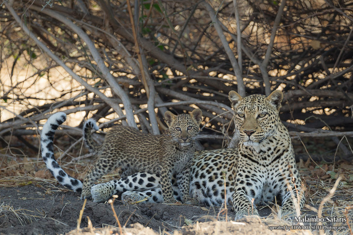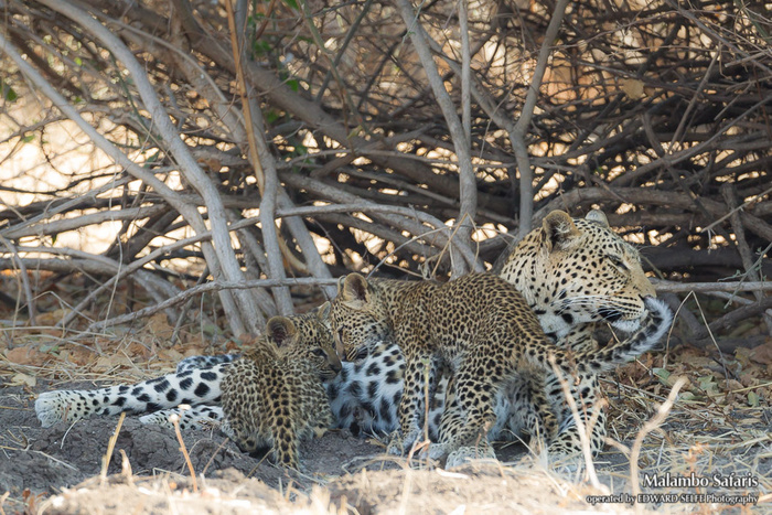 One of the best sightings of the year, a beautiful interaction between a female leopard and her two cubs.