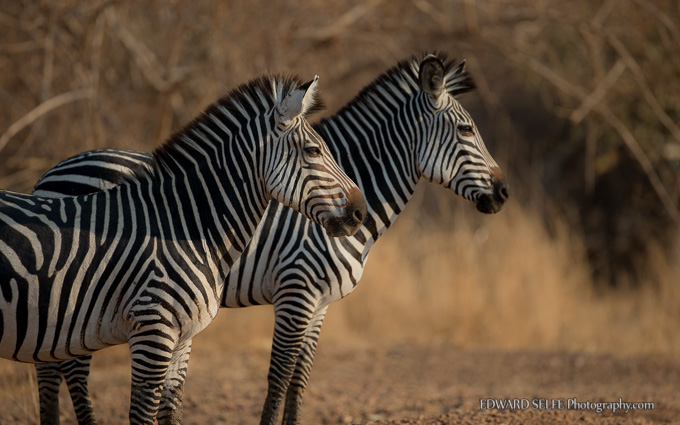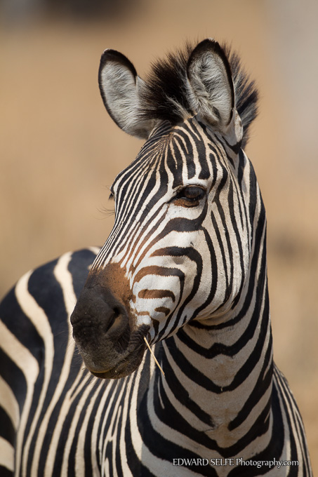 Heading out of the park, we came across a herd of zebras crossing the road. The light was bright but with some some careful use of metering, we could get some portraits.