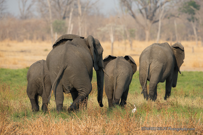 Elephants were everywhere, but not in a position where we could get a silhouette. We couldn’t ignore this stretched out family though, as they cruised across the plain in search of a night’s forage.