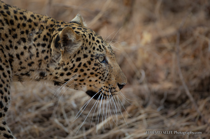 Moving on, we came across a leopard right by the road, who was stalking in the evening light.