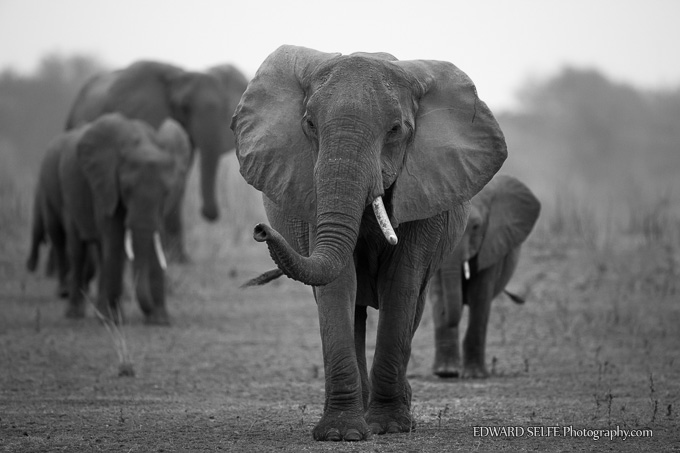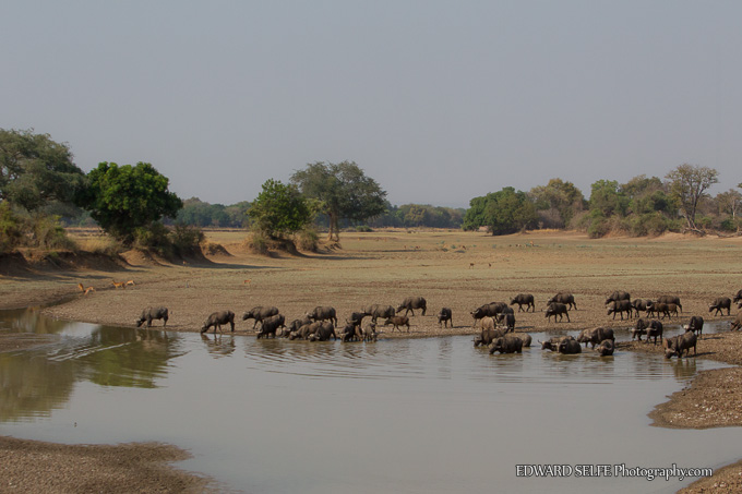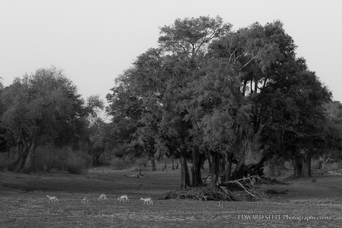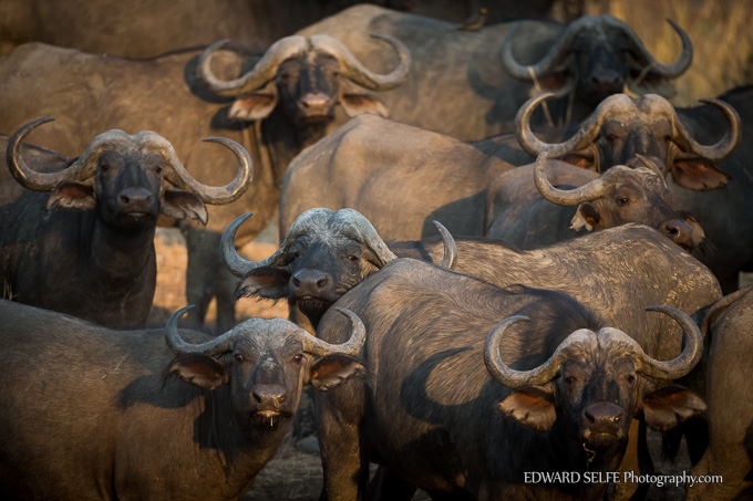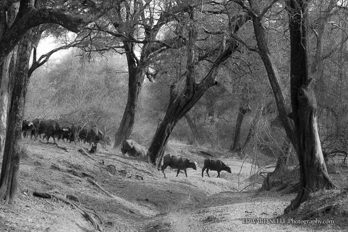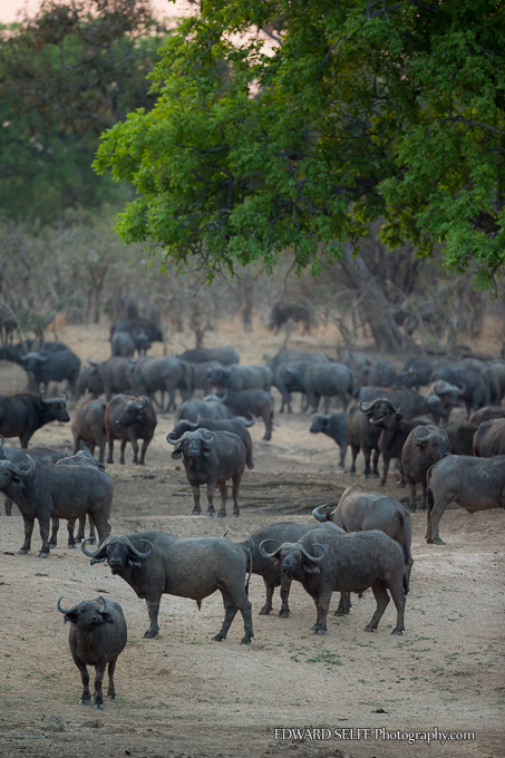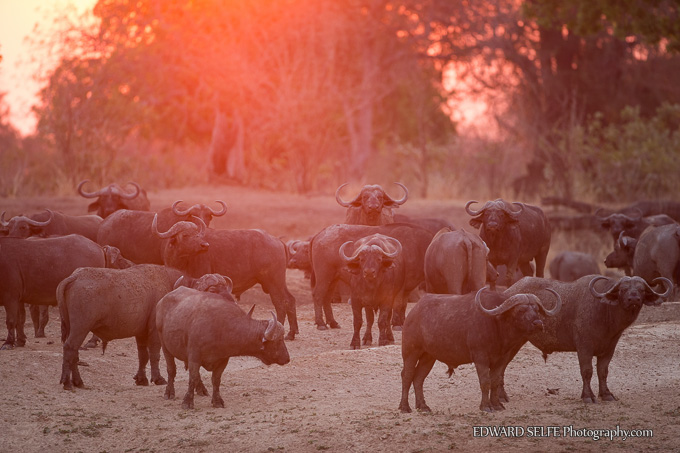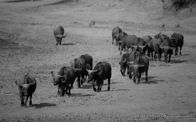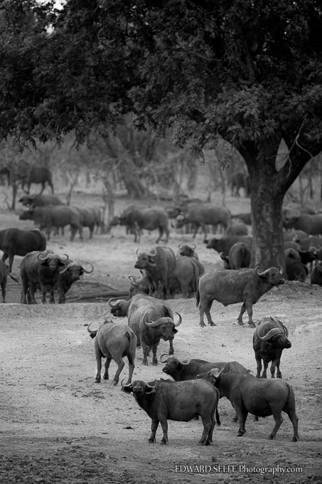 And our arrival at Lunga coincided with drinking time for the resident buffalo herd which appeared on cue and started to come to water. As the sun went down, we tried different compositions and thought about how b&w conversions might look later.