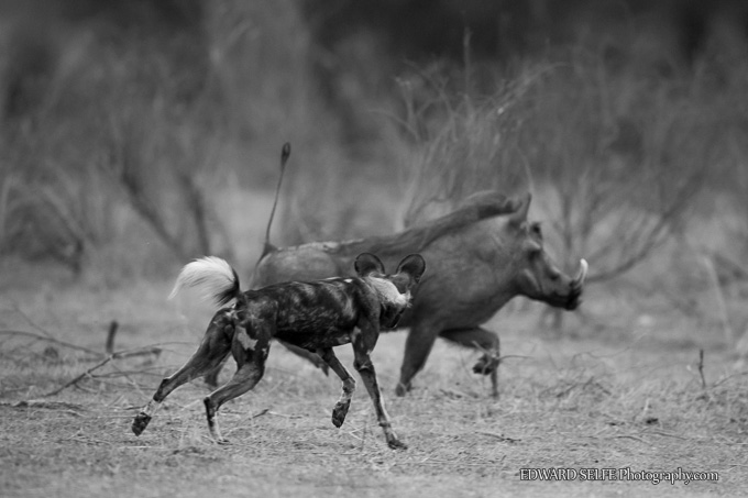 At one point, the pack took on an adult warthog boar, but quickly thought better of it when the pig turned and faced them!