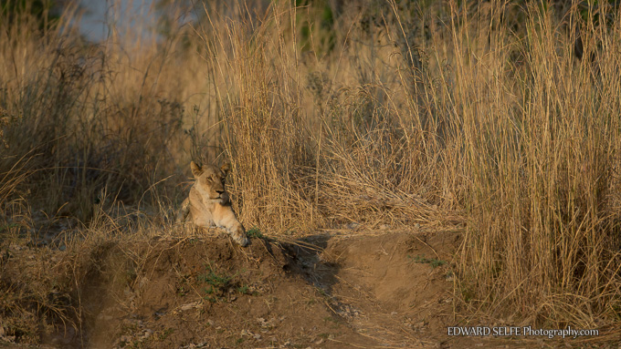 We then spent some time searching for the small cubs of the pride (around 2 months old) and managed a brief glimpse of them, before their mother took them into the bush.