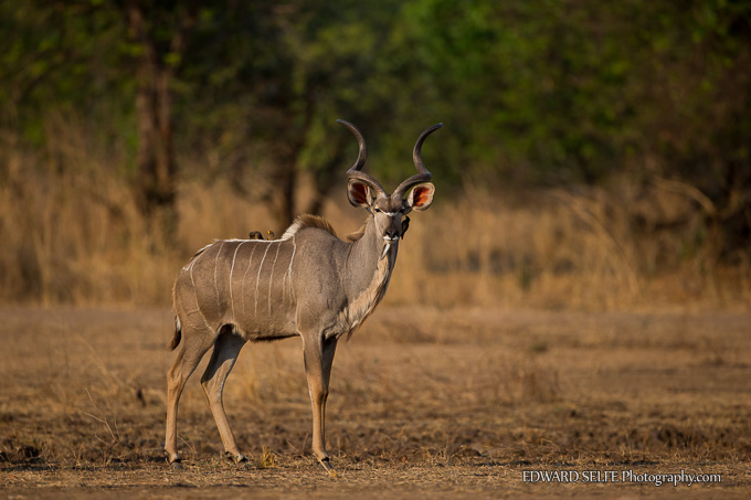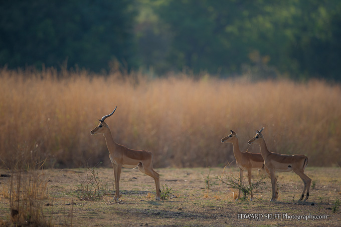 Rushing across Mtanda Plain to find impalas and elephants for sunset, we spotted a puku backlit in the low-light and decided that he might be the ‘impala’. He didn’t want to jump anywhere though, and just stood regally, surveying his surroundings.