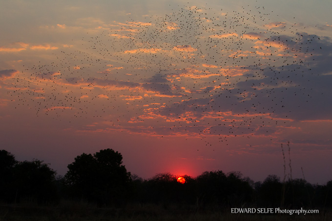 We kept back from the water’s edge and enjoyed the show as the light faded. In the last 20 minutes before dark, millions of Queleas began to come to the water to drink, arriving in endless streams, drinking and then moving off without breaking the chain. For 30 minutes, a long snake of tiny birds passed us, thousands every second, in an astonishing natural phenomenon. It’s hard to capture this on stills camera, and instead we decided to have a drink and just watch.