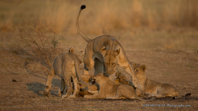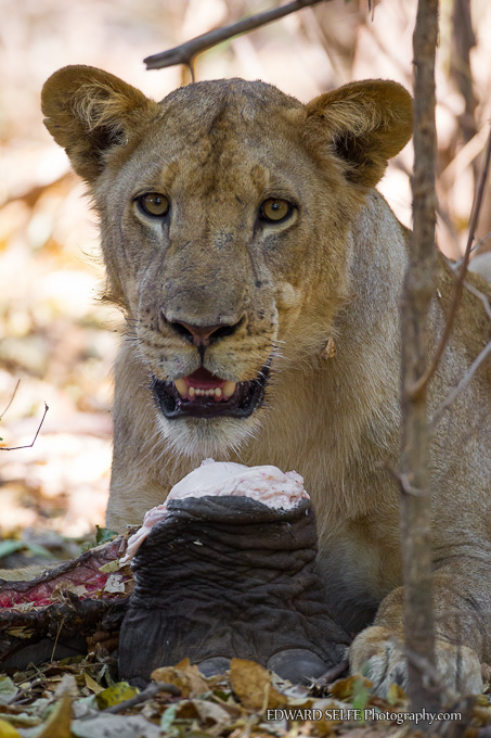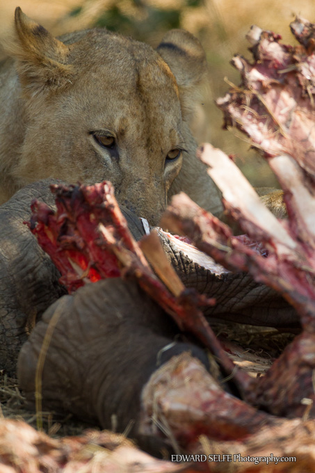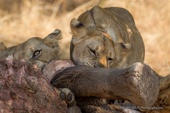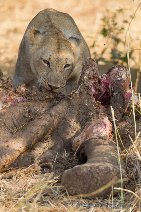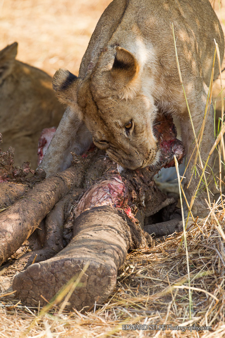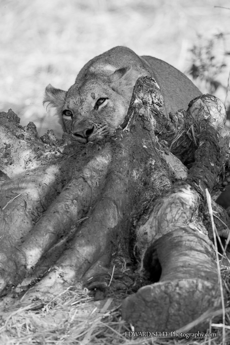 The lions had nearly finished the elephant (only the second time that I have known lions kill an elephant in South Luangwa, although there may well be more occasions before I arrived). We took photos as the older cubs tried to get the remaining scraps from the tough skin.