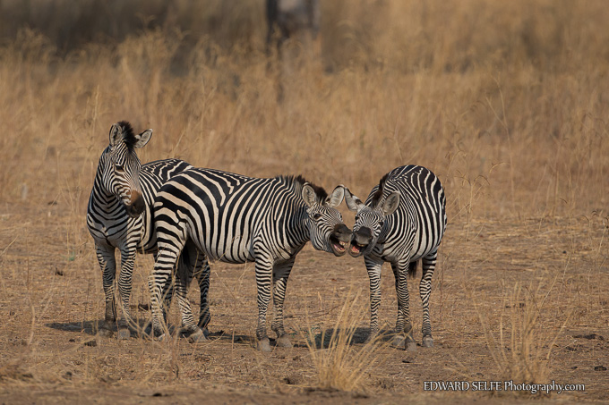 We set out early again for our last afternoon, and quickly found a herd of zebra. They never arranged themselves in a pleasing way, and even though we waited a while, I didn’t hear many camera clicks from behind me! Then two of the stallions in a nearby group decided to make silly faces at each other, in an attempt to impress the mare nearby!!