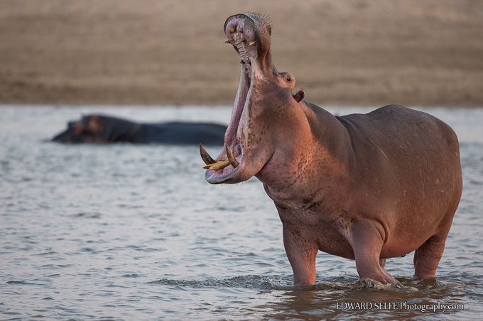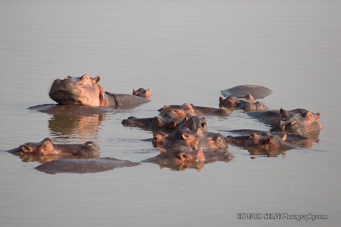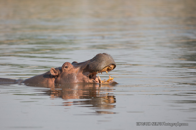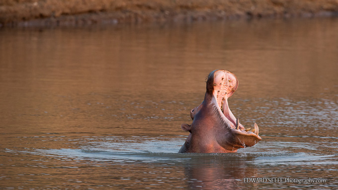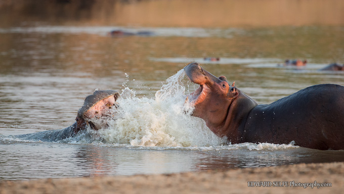 We decided to head down to the river and try our luck with a large group of hippos resting up in the shallow water. It was a good decision as the hippos were very restless and compressed into a small space. Tempers were close to the surface and our arrival prompted some displays of dominance from large bull hippos!