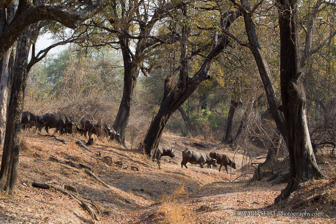 At the next lagoon, a large herd of around 200 buffalo were approaching the water. I guess where they would go and parked in the bottom of an Ebony grove so that we could photo them as they passed.
